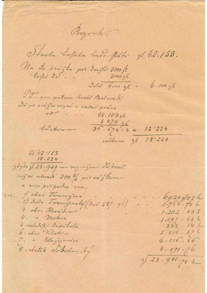 Rukopis Václava Kosmáka - rozpočet na stavbu kostela sv. Mikuláše