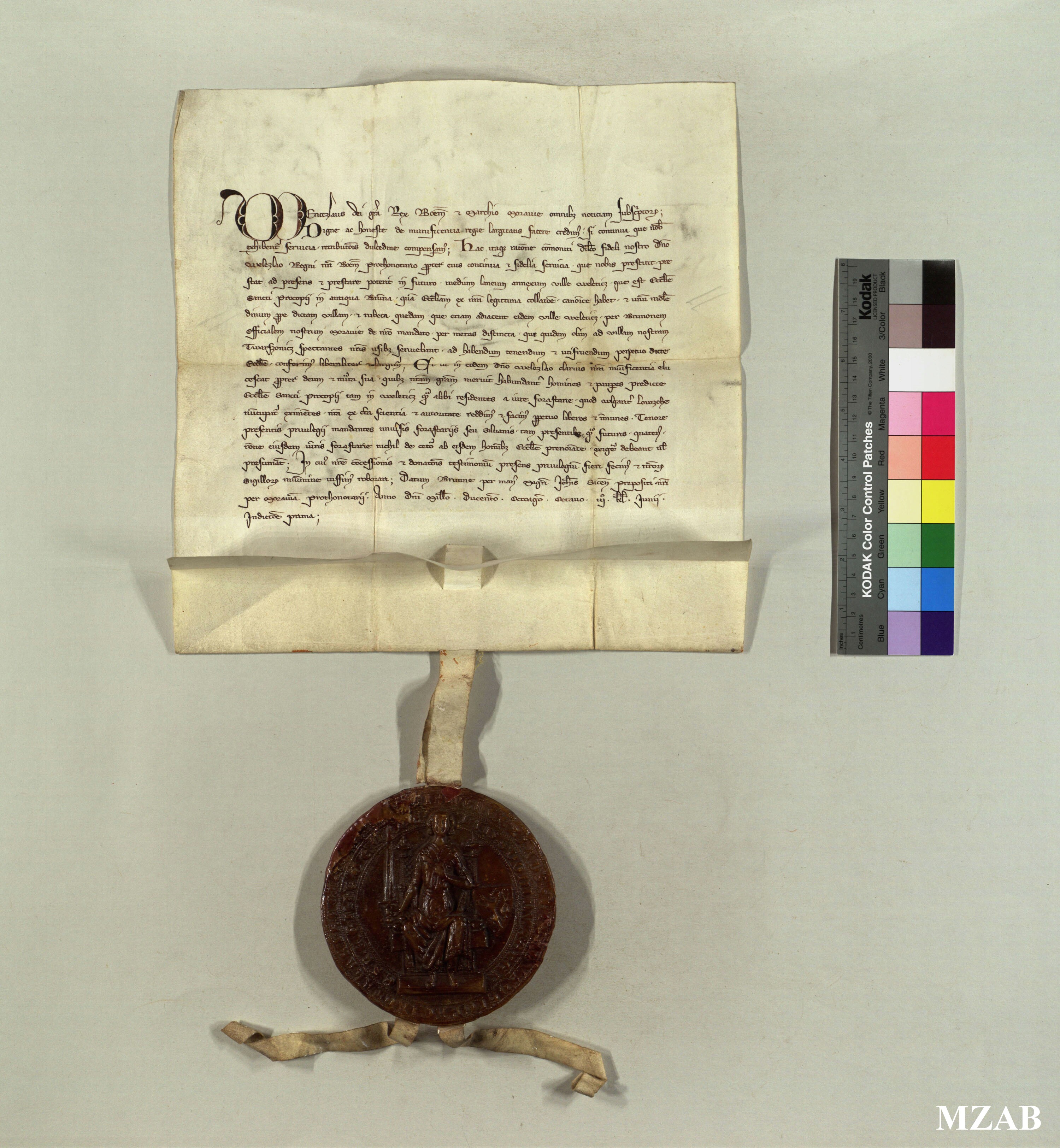 Listina krále Václava II. z r. 1288 - první písemná zmínka o obci Tvarožná (Moravský zemský archiv v Brně Cisterčiacki Brno (1225-1748) 1288 V 30)